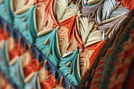 Intricate stitches in fabric from colored threads. AI generated illustration