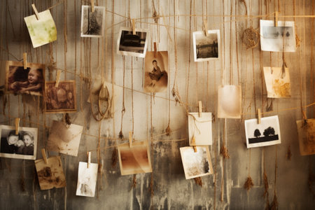 Pictures on a clothesline created with generative AI technology
