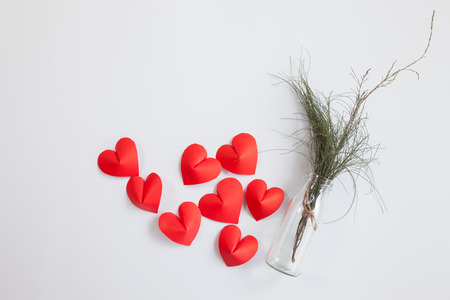 Heart-shaped paper and glass jar Arrange as background. This is the symbol of love. For In February 14th, which was a day of love.