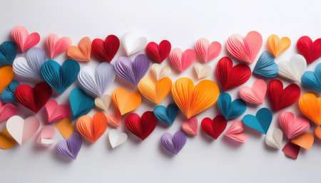 Holiday Card. Hearts from paper on white paper background with copy space. Valentines day.