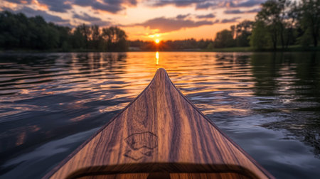 Generative AI : Closeup of canoe bow on water