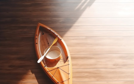 Paddle on wooden dock. Concept of canoeing as dynamic and adventurous sport.