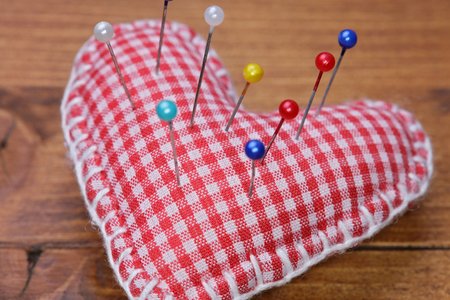 Feelings and emotions. Love problems.Behavior killing every relationship. Heart shaped pin cushion