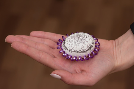 Plaid pin cushion in the hands of seamstresses. Handmade, sewing.