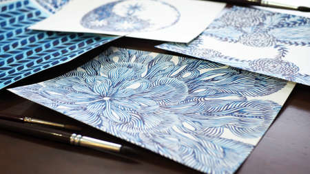 watercolor painting art abstract blue white top view illustration studio workshop artist selected focus