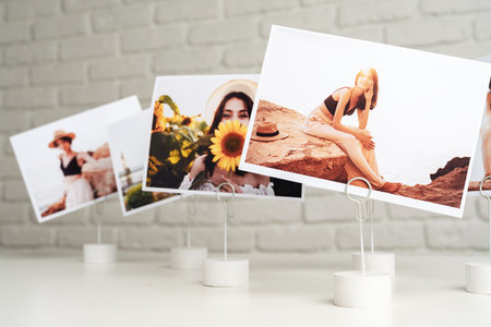 Printed colorful photos of women portraits. Printing photos concept