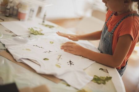 creative leisure. painting hobby. artful personality. talented girl sticking her watercolor drawings to the wall