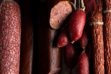 Smoked sausage, a composition of traditional dry, thin rural meats Regional food.