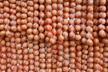 Close up Image of Thai sausage made from minced pork mixed with Thai spices..