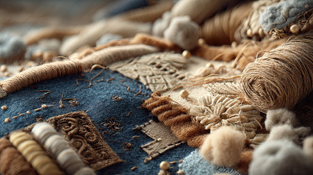 Abstract Textile Art A Close-Up of Patchwork, Textures, and Sustainable Design Elements.