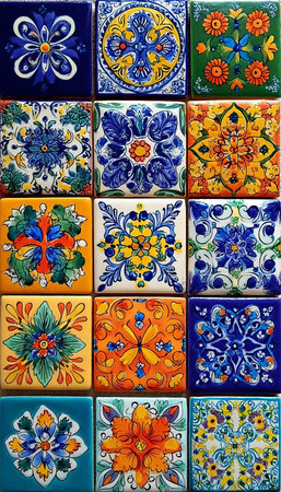 Colorful Mexican Talavera Tiles Mosaic Intricate Decorative Art for Unique Retro Interior Designs