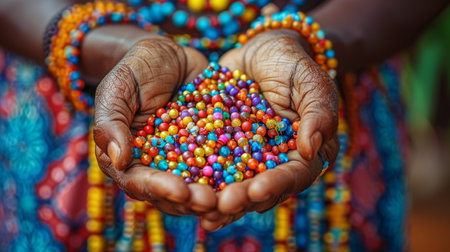 A pair of hands gracefully holds a collection of colorful beaded bracelets, showcasing the beauty of craftsmanship and artistic expression.