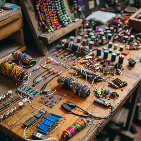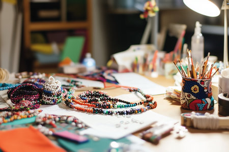 Crafting space filled with beads, yarn, and tools for creative projects and artistic endeavors. Generative AI