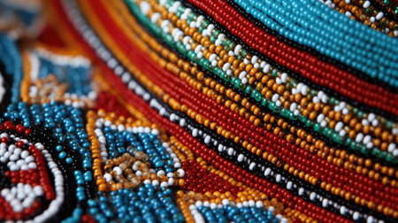 This stunning close-up showcases a beautifully detailed piece of handmade jewelry featuring an array of colorful stones and intricate bead patterns, highlighting creativity and cultural significance.