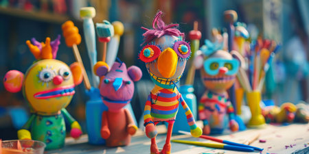 Explore a vibrant workspace filled with creative figurines and art supplies perfect for sculpting.