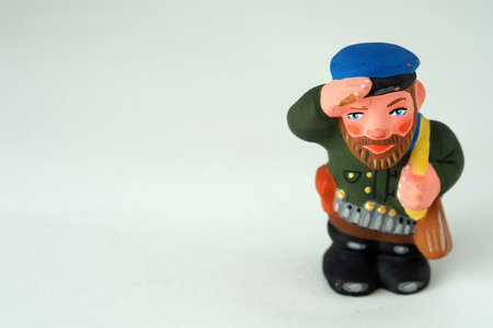 Handmade colorful wooden rajasthani musician souvenir with plain background.
