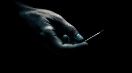 A compelling image of a human hand holding a matchstick against a dark backdrop, symbolizing the potential for ignition and creativity.