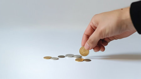 Close-up of a hand scattering coins, with a shimmering golden bokeh effect in the background, symbolizing wealth and abundance.