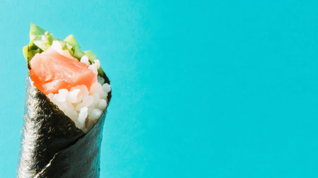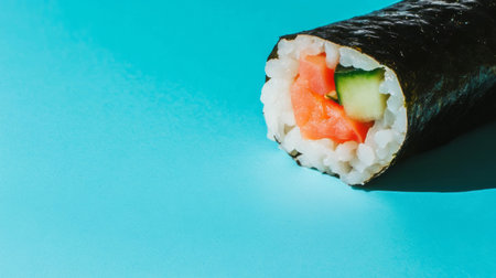 Temaki sushi on vibrant blue background for culinary art and design