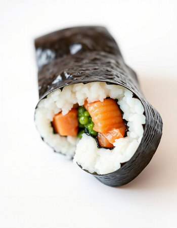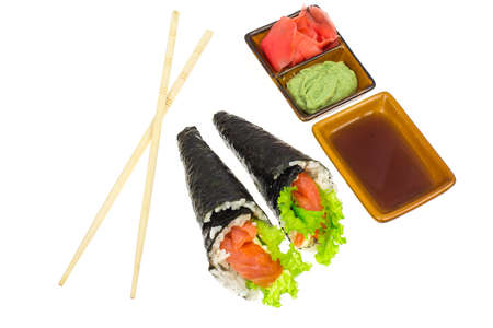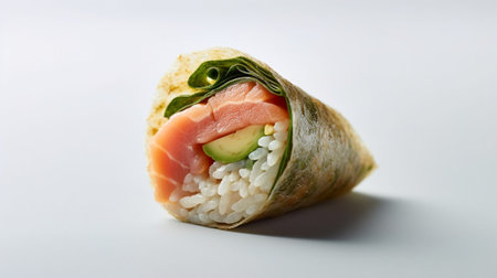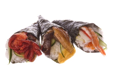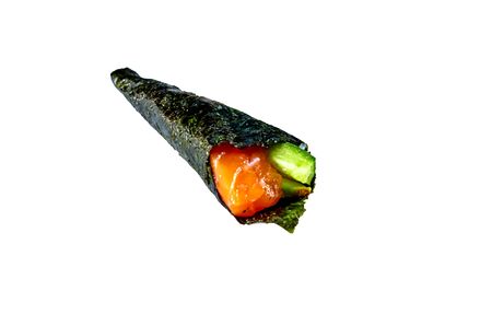 Isolated image of Temaki Zushi or hand rolled sushi.