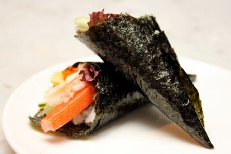 Three delicious temaki sushi hand roll