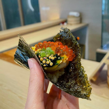 Japanese hand rolls with shrimp and caviar