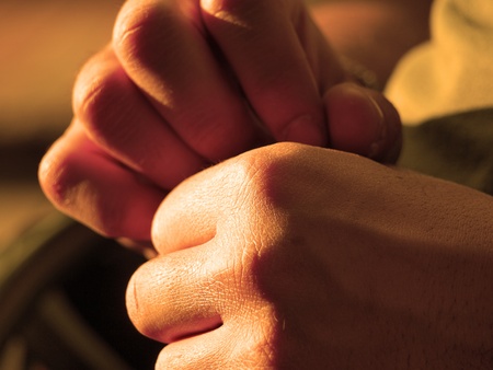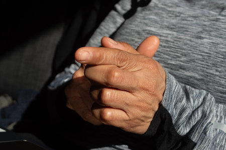closeup asian hands clasped together