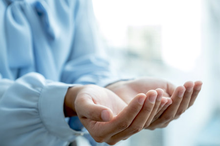 Close-up of female hands with palms up.