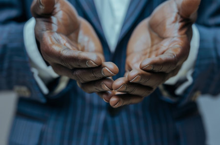 A close up of a persons hands with their palms open, AI