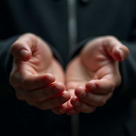 Hands are positioned palm up, symbolizing openness and a willingness to share or receive support and connection.