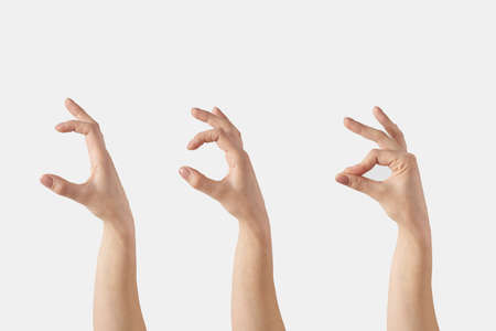 Set of female hands grip gesture on white.