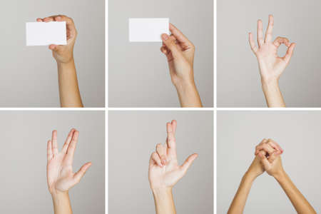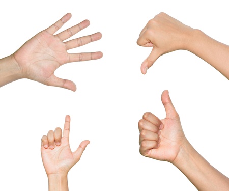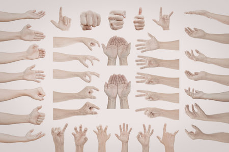 This image displays a collection of various hand gestures against a white background, illustrating different poses and signs.