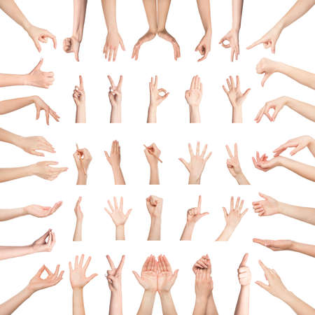 hand collection in gestures with white skin isolated on white background
