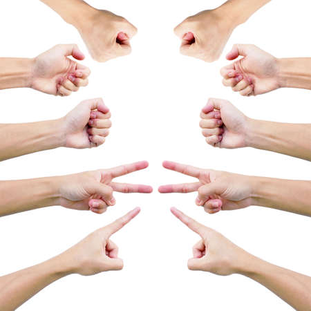 Various hand gestures - isolated on white, including cross, pointing and clenching