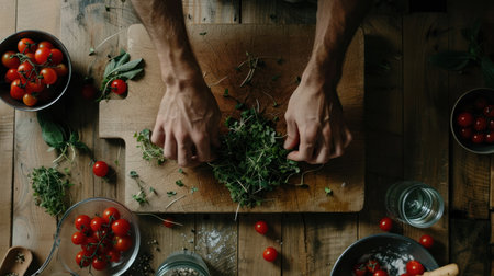 Experience the art of culinary creation as skilled hands prepare fresh, vibrant ingredients. Perfect for food blogs, restaurant promotions, and healthy lifestyle content.