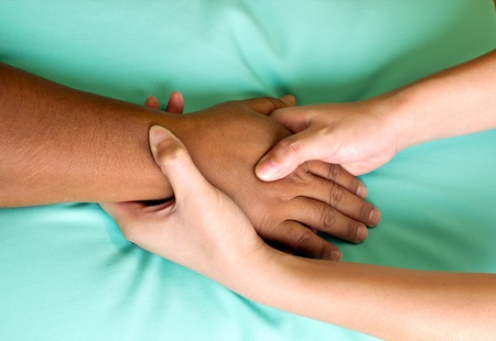 Shiatsu Hand Massage. Therapist activating the heart meridian.