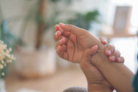 Holding a wrist for relaxation and comfort at home