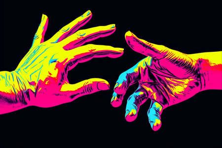 Neon Hand Collage: A Vibrant Pop Art Fusion in Psychedelic Modern Style for Posters, Banners, and Wallpaper