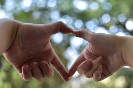 Close-up of a man and a woman hands gently touching, symbolizing connection, unity, and human relationships.