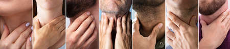 People Touching Their Sore Throats Collage. Diverse Group Of People
