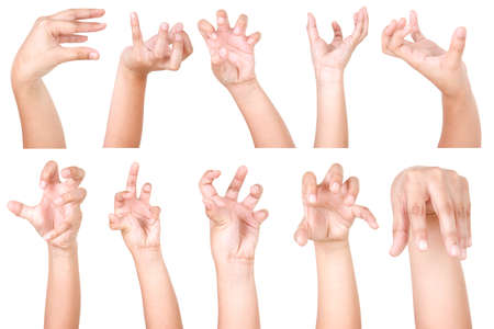 Multiple Male Caucasian hand gestures isolated over the white background, set of multiple images.