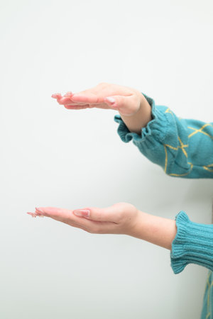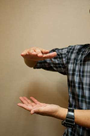 Hands coming up and showing sign language. Nothing in hands sign language in black color.