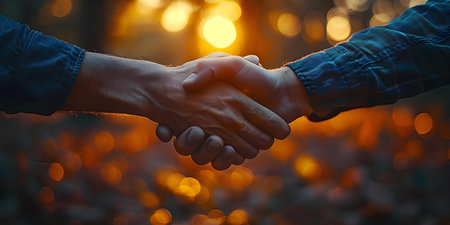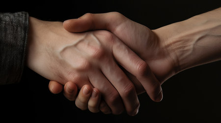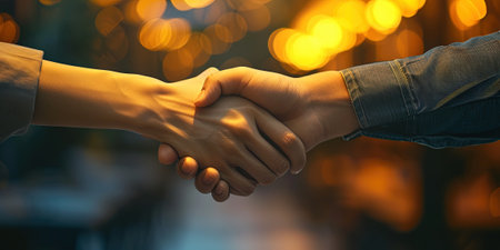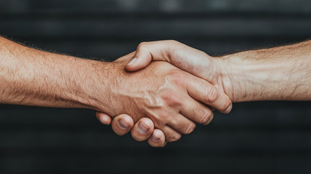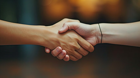 Close up of two hands shaking, symbolizing unity and agreement. image captures essence of collaboration and connection, highlighting importance of partnership and trust