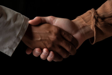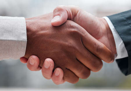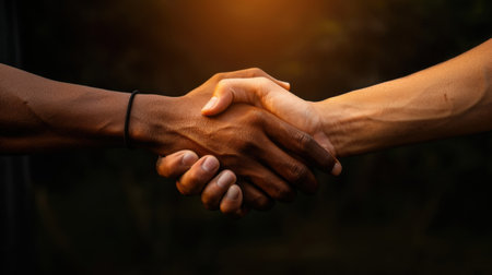Capture the essence of partnership with this image of two diverse hands shaking, symbolizing unity, support, and collaboration in both personal and professional contexts.