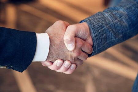 Successful partnership. Professional cooperation and agreement. Closeup of handshake. Business people making a deal.