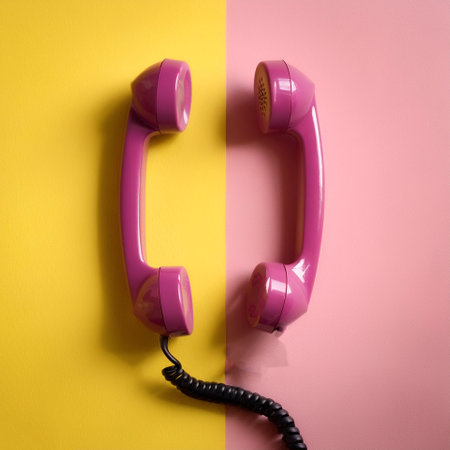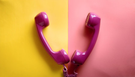 Magenta telephone handset, isolated on a Yellow and Pink Pastel Background