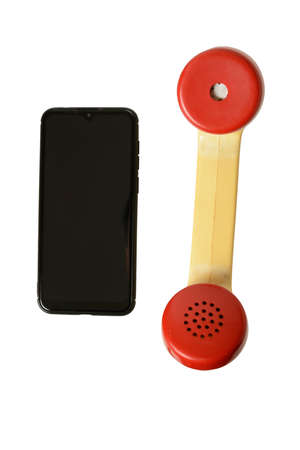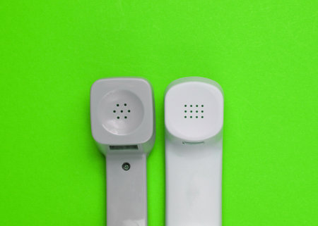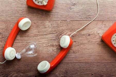 top view vintage telephone receivers with cord. High quality beautiful photo concept