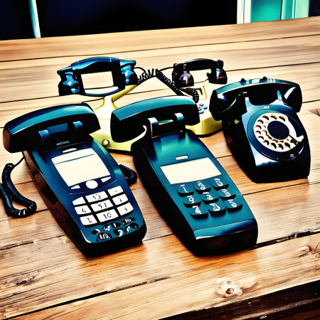A charming arrangement of vintage push button phones in various colors, showcasing retro designs. Perfect for adding nostalgic flair to any space.