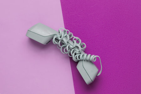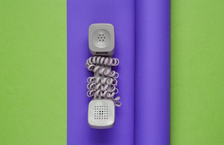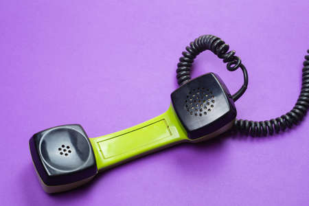 Telephone handset. phone receiver on purple background. old communication technology. copy space