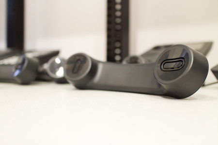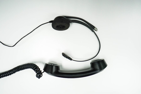 Top view of chat bubbles with telephone receiver and copy space Picture on . High quality beautiful photo concept